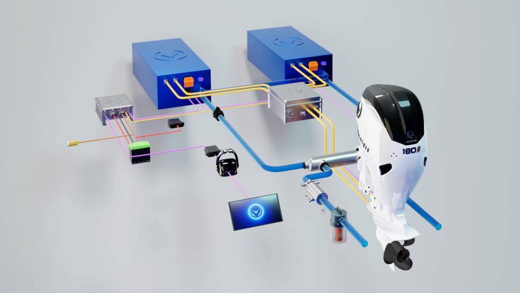 At the heart is Vision Marine’s innovative flagship High Voltage Marine Powertrain, the E-Motion™, which includes engineered battery packs tailored for marine applications, an inverter, a high-efficiency electric motor, and a proprietary technology that integrates the transmission and motor design, complemented by control software. The 180E Outboard, provides a continuous 180HP at the propeller plenty of power to get their boats up and on plane effortlessly.